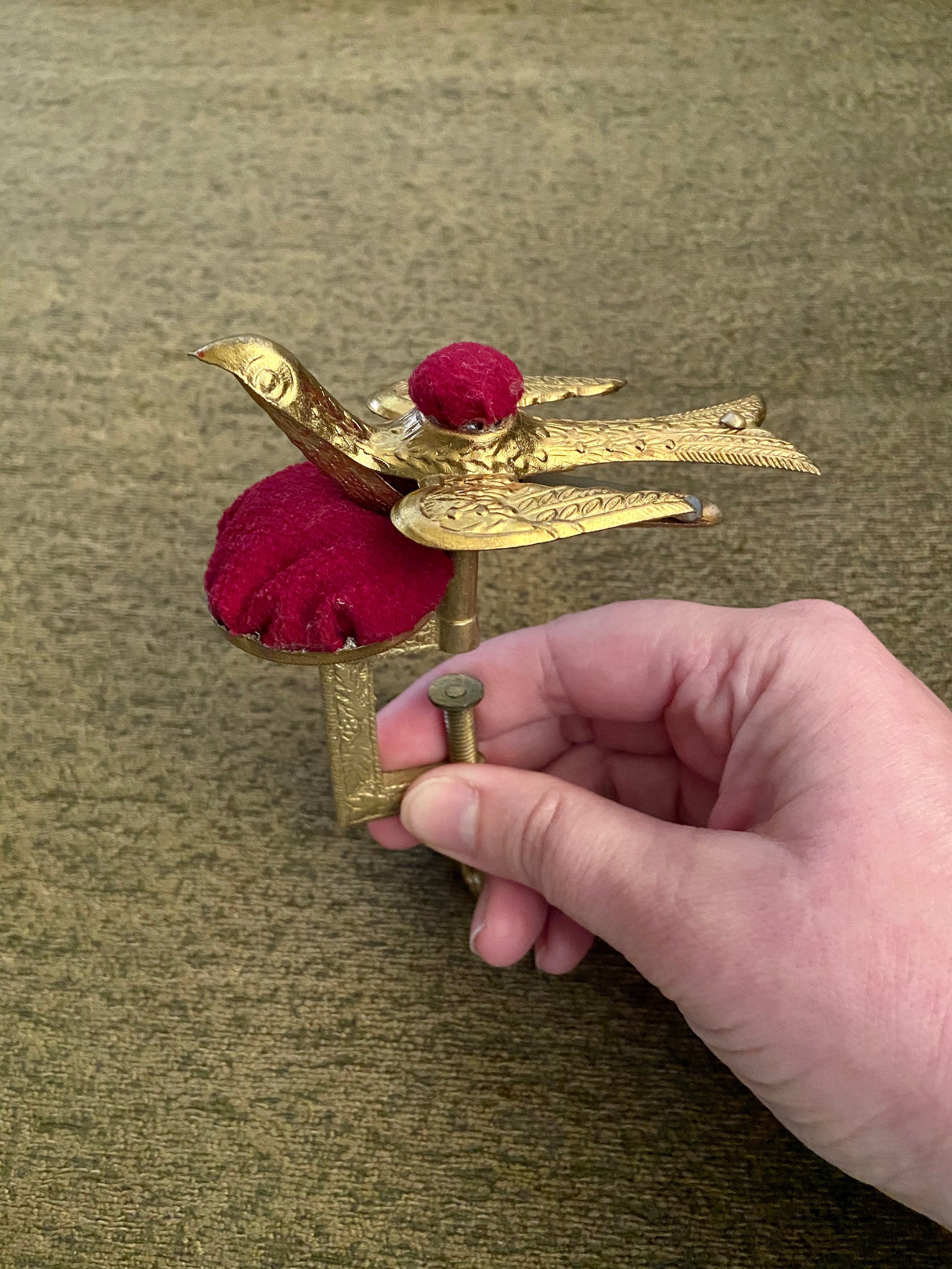 Solid Brass Replica Victorian Bird Sewing Clamp Pincushion By Insideout 786295157390 Ebay