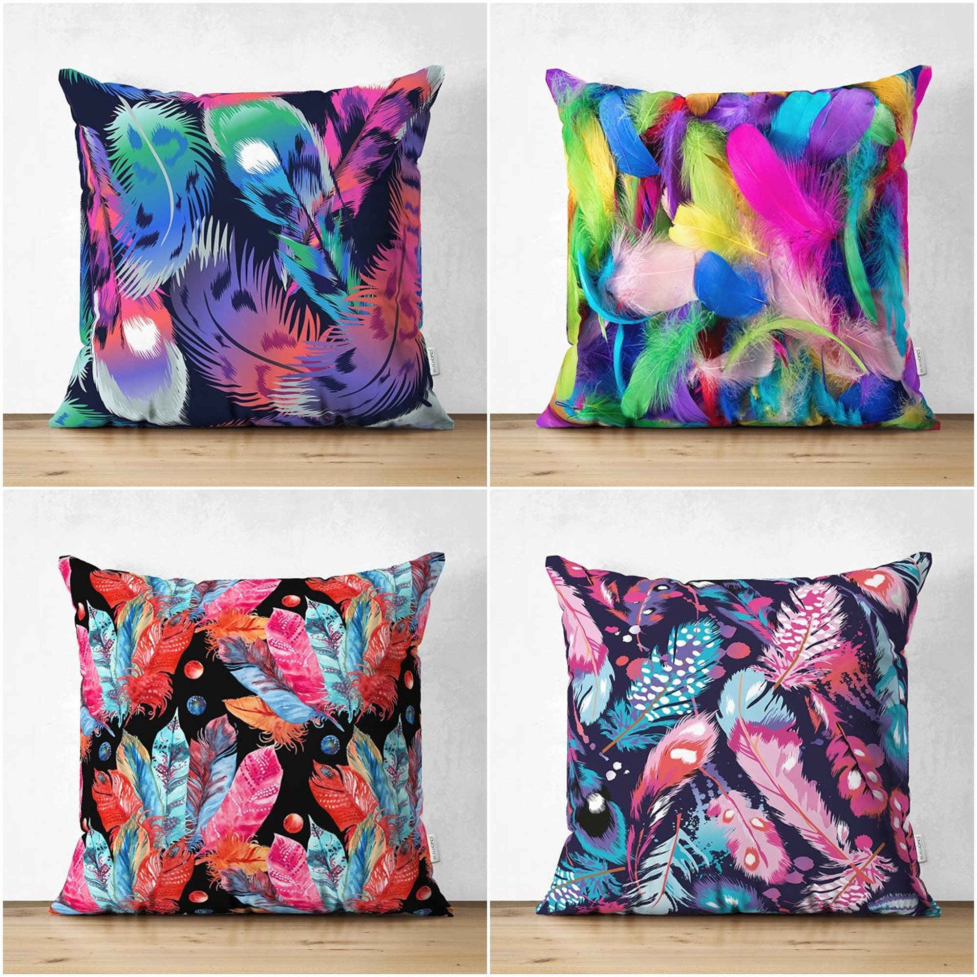 Feather Pillow Covercolorful Feather Print Cushion Casecozy Etsy Denmark